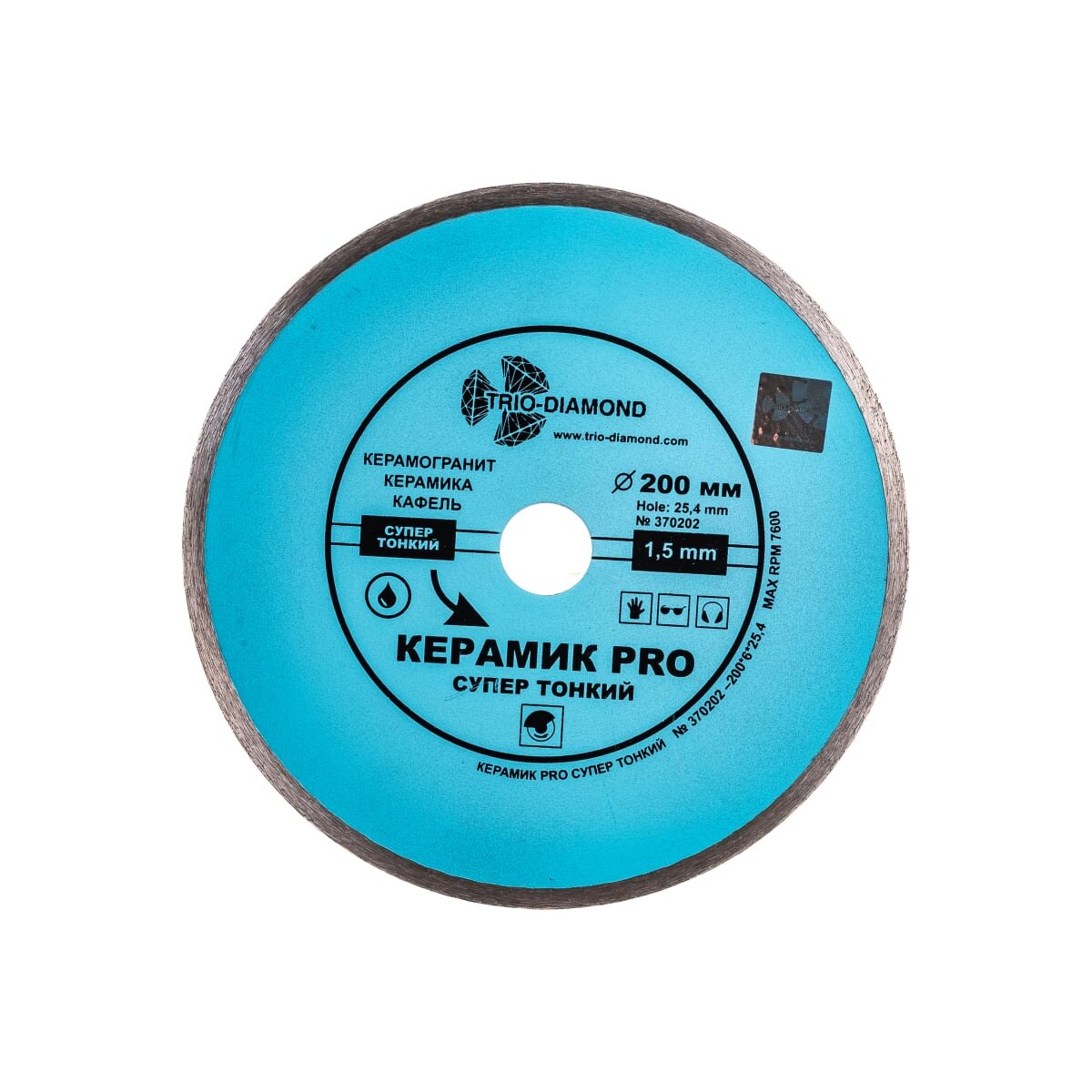 Диск алмазный отрезной TRIO-DIAMOND Сплошной Керамик Pro 370202 200x25,4