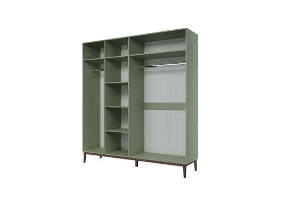 Корпус шкафа выполнен из ЛДСП в цвете Зеленый самшит, а фасад - из МДФ в таком же цвете. Фрезерованные фасады придают шкафу элегантный и современный вид.