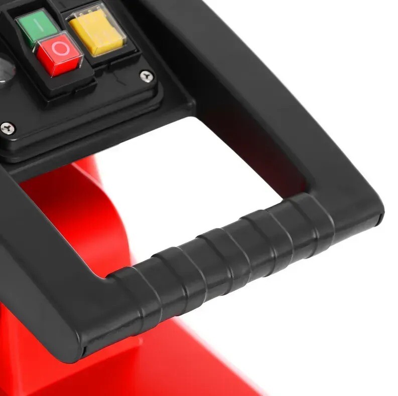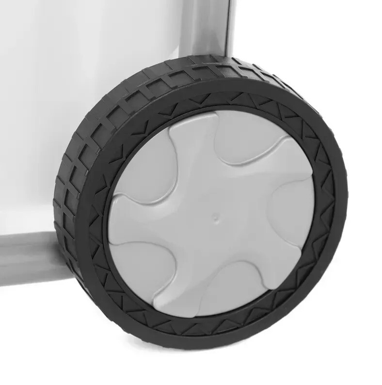 пара колес с широким профилем и приподнятой осью делает транспортировку агрегата устойчивой даже по мягкому грунту или неровной поверхности.