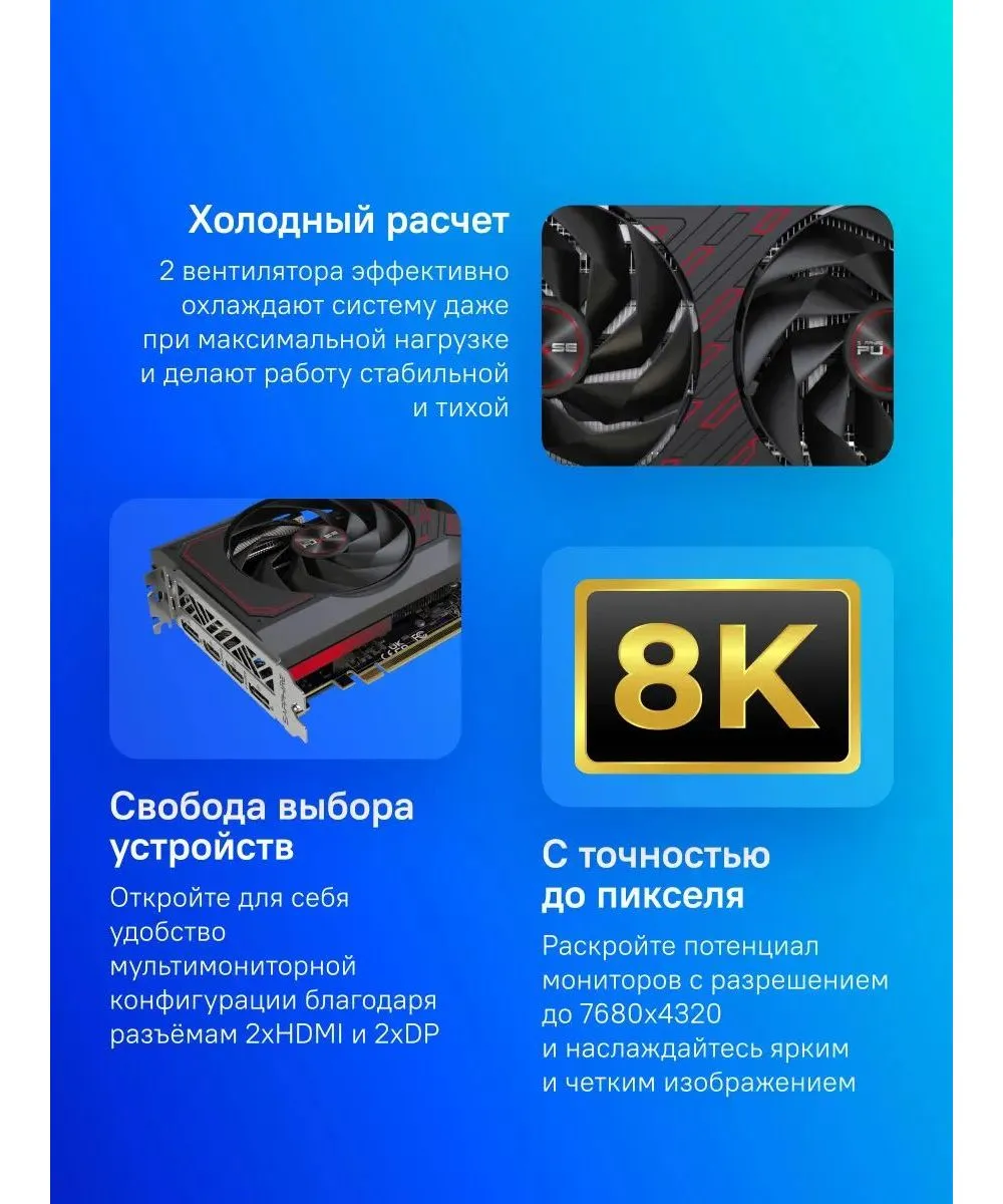 Описание товара Видеокарта Sapphire RX7600XT PULSE GAMING OC 16GB (11339-04-20G)