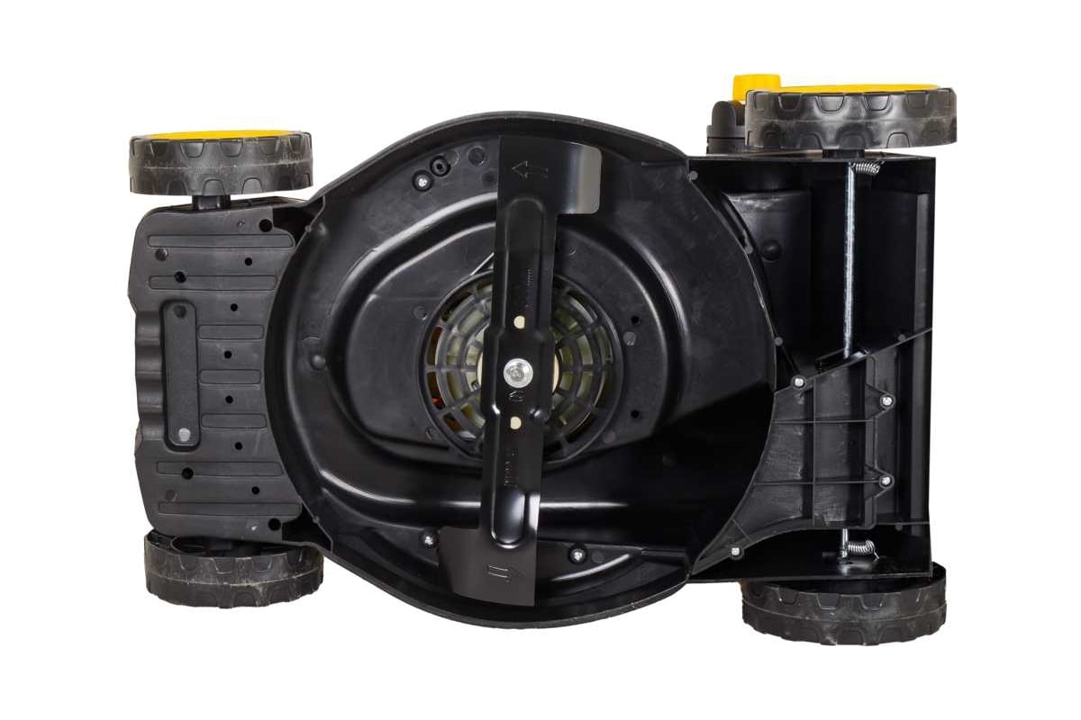 Редукторный привод на нож обеспечивает высокую мощность, надежность и долговечность работы газонокосилки. Справляется с густыми травами, сохраняя при этом высокую скорость вращения ножа.