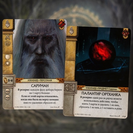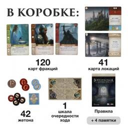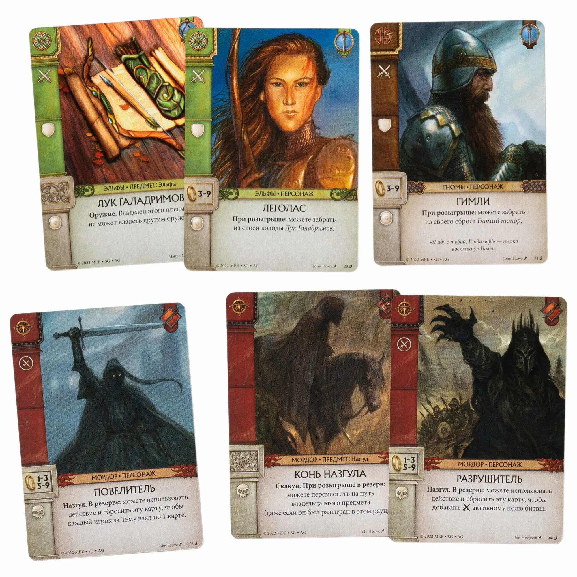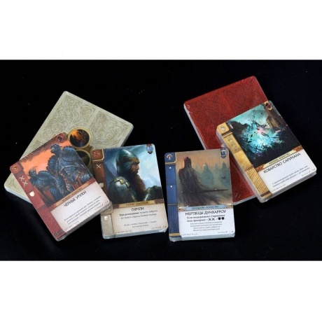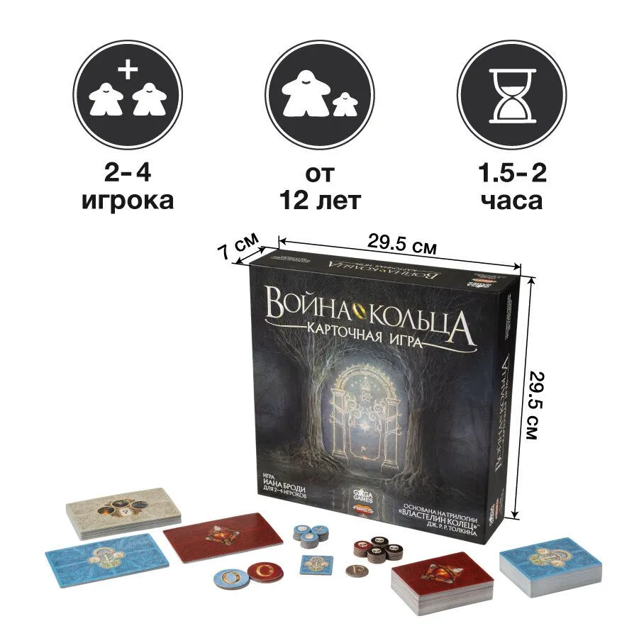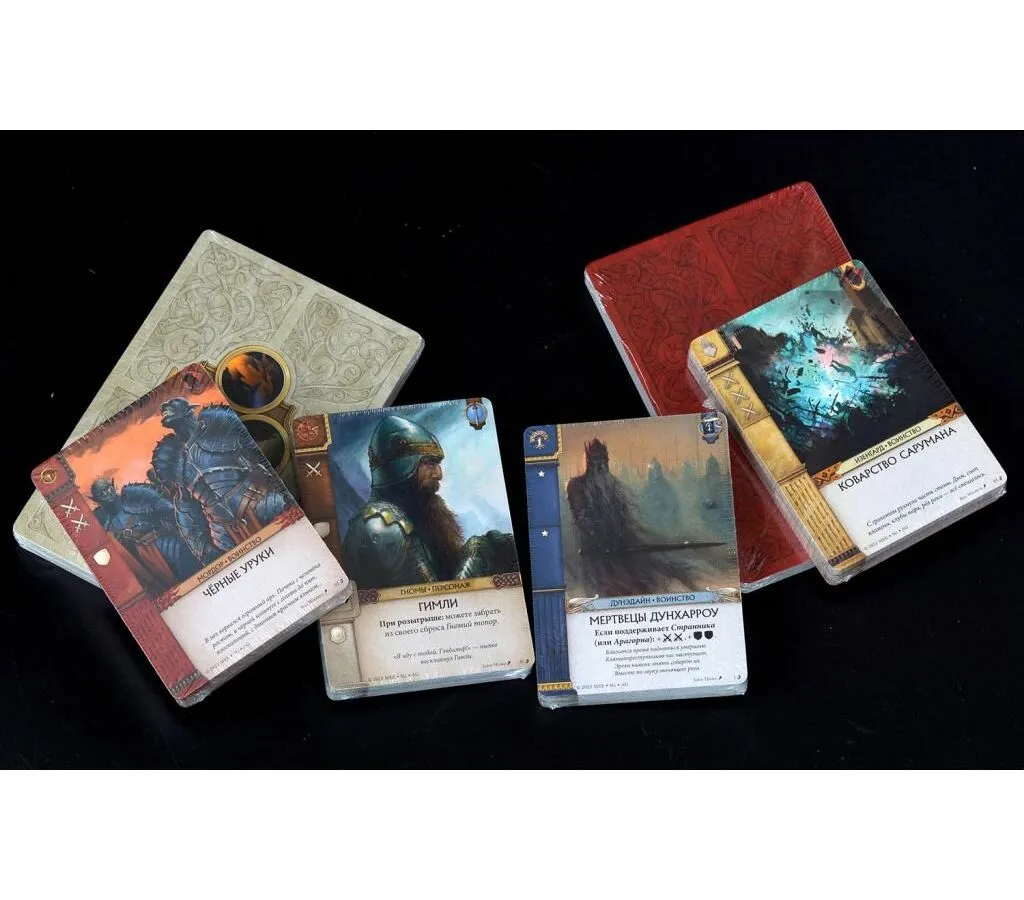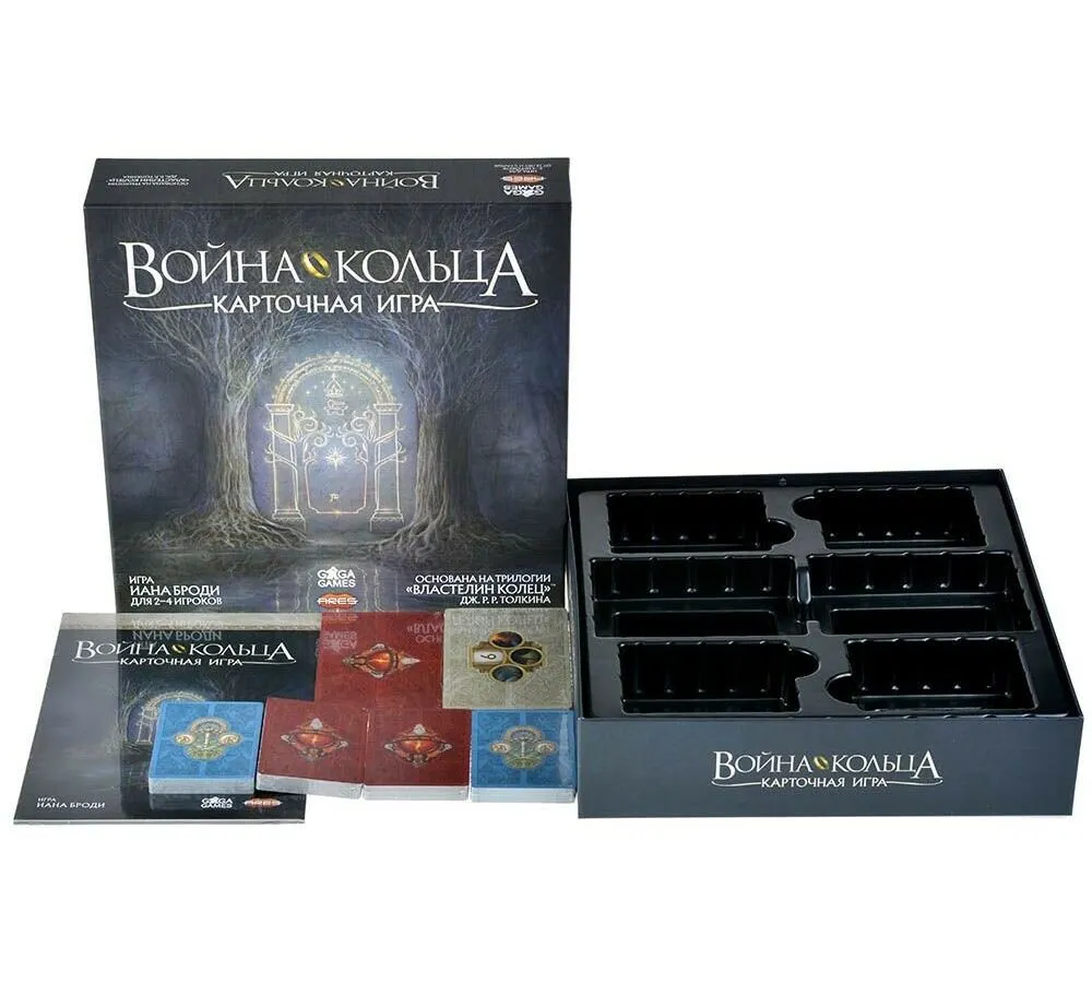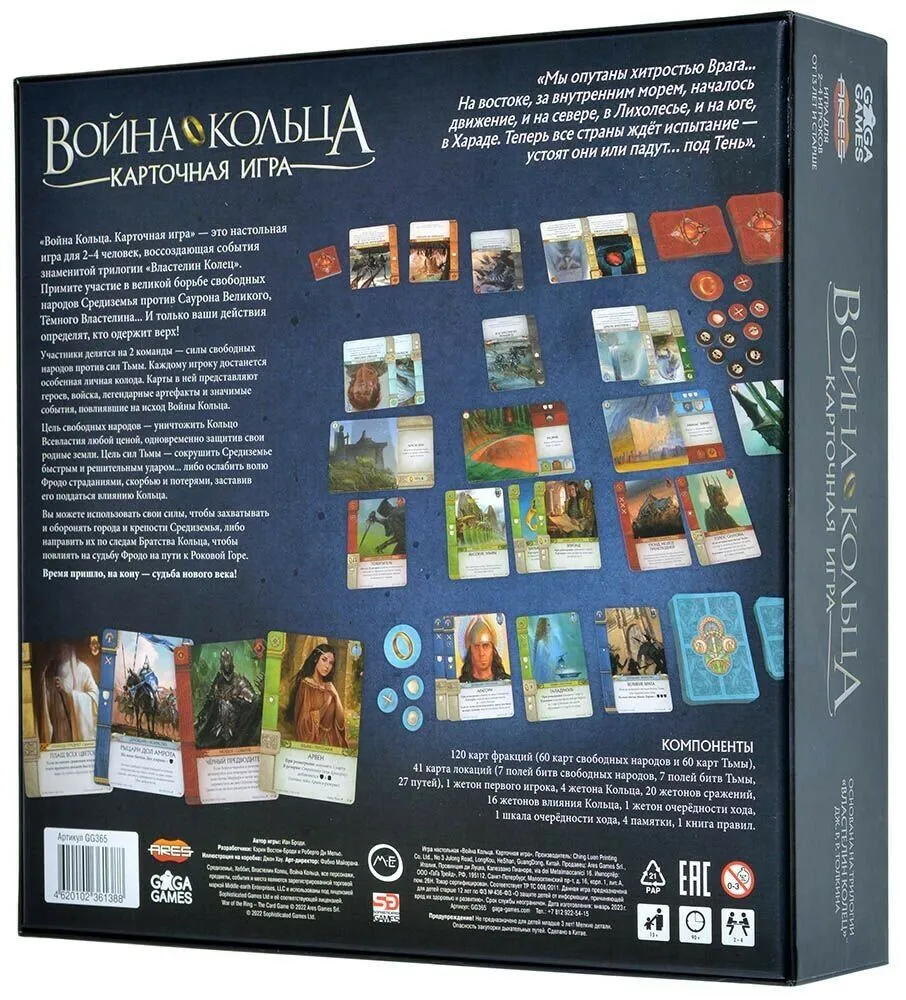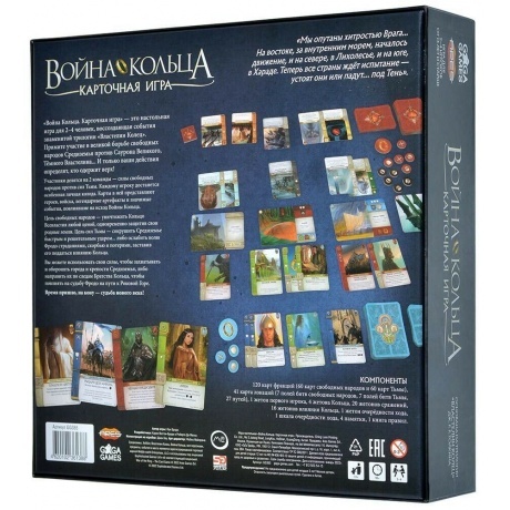 Карточная Игра – это увлекательнейшая карточная стратегия, которая позволит вам развернуть события знаменитой трилогии «Властелин Колец» прямо на вашем столе. Выберите сторону Тьмы или свободных народов и, разыграв сценарии, решите судьбу всего Средиземья. С помощью карт, на которых изображены армии, персонажи и события, сражайтесь сразу на нескольких фронтах войны, каждый из которых имеет свои уникальные особые условия в каждом раунде. Победы в битвах смогут приблизить вас к желанному выигрышу, а поражения с каждым разом будут усложнять задачу. Цель сил Света – как можно быстрее отнести Кольцо к жерлу Ородруина, сдерживая напор врагов. А силы Тьмы должны не допустить этого, и для этого они будут решительными и мощными атаками стараться сломить дух соперников, чтобы предотвратить уничтожение Кольца. Внутри коробки с игрой вас ждут несколько режимов игры и дополнительные сценарии с разными стартовыми условиями. Собирайте войска, отправляйте их сражаться и захватывать крепости, используйте весь свой талант полководца и решите судьбу Средиземья!