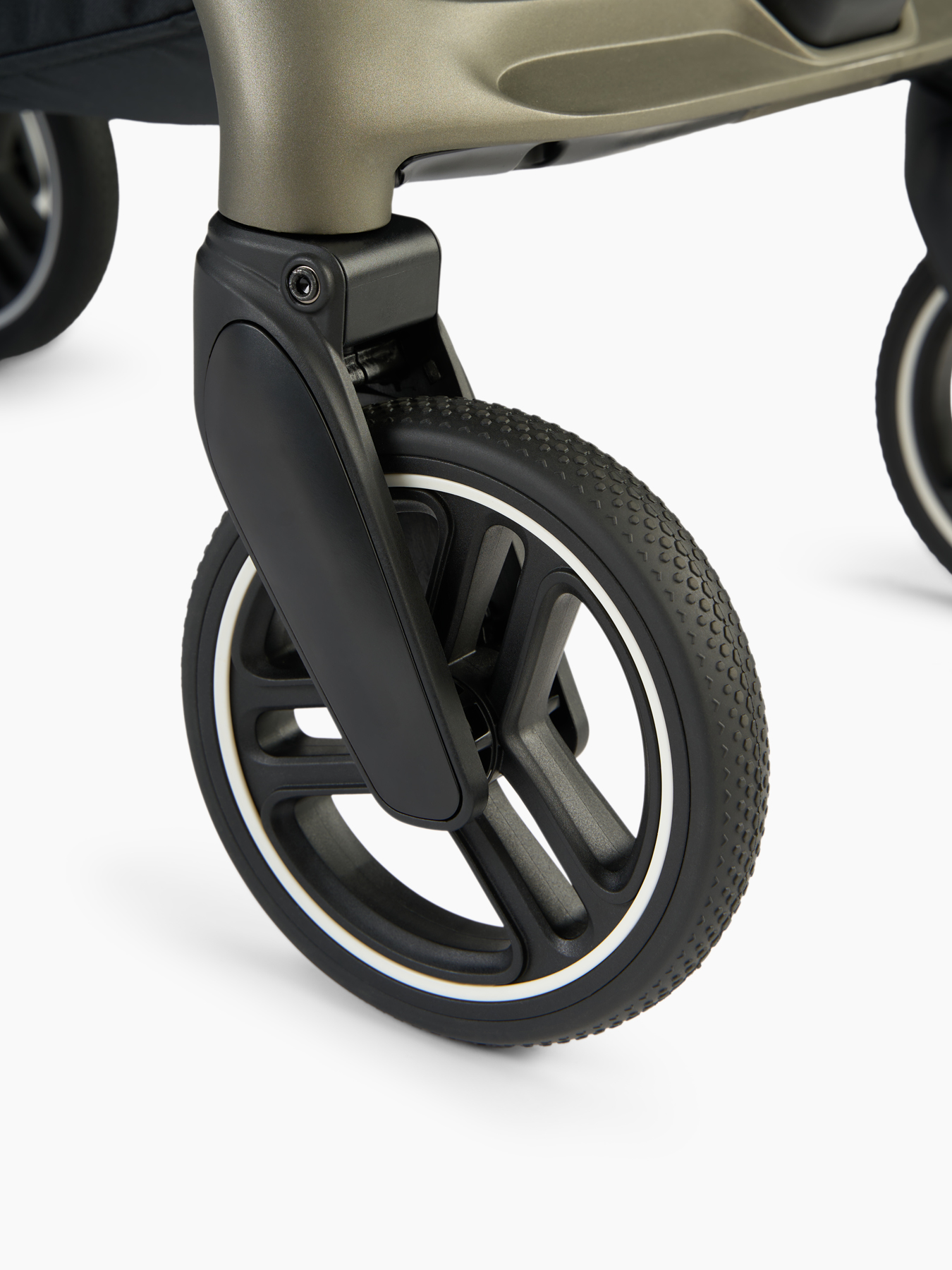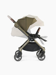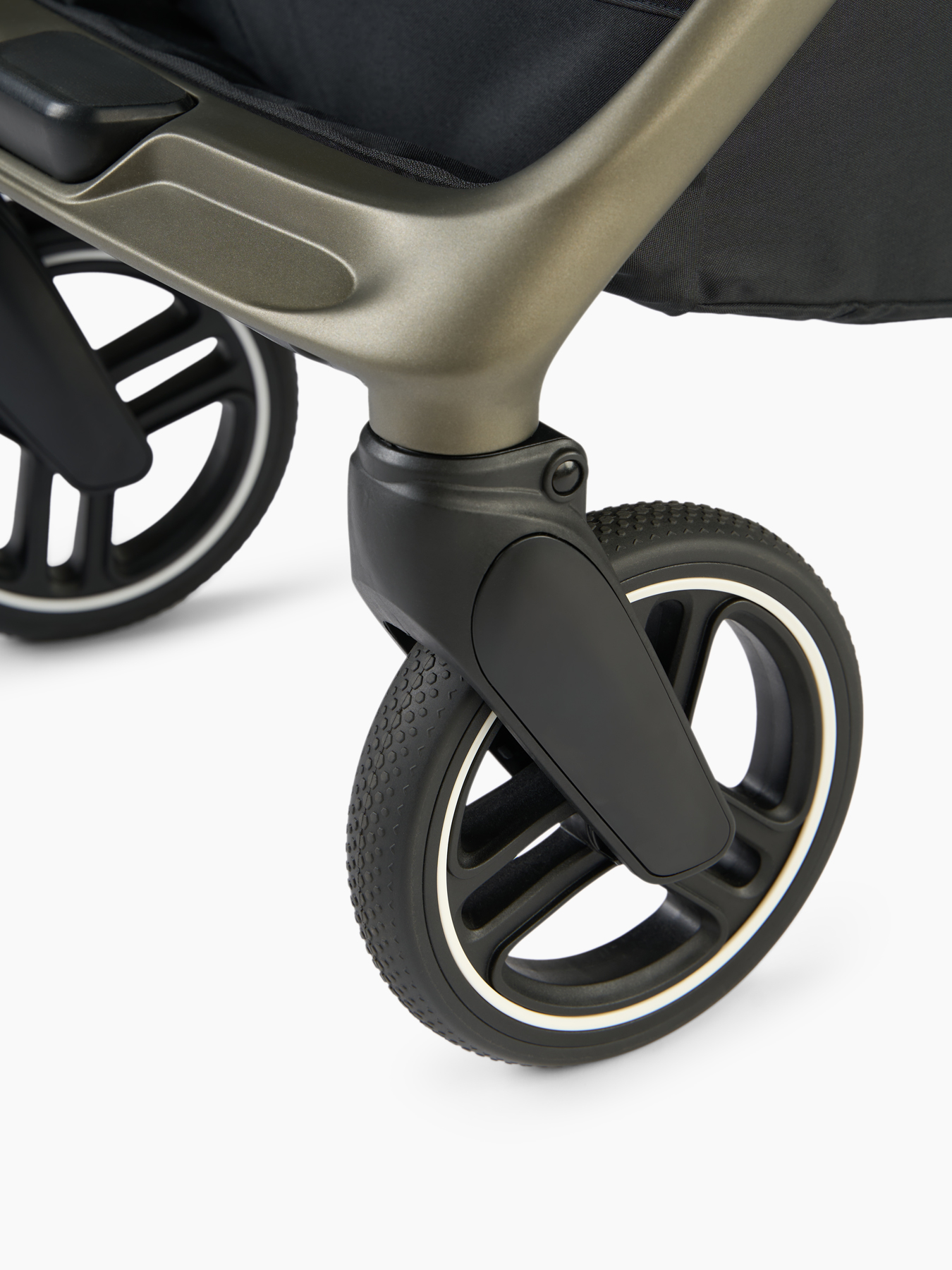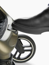Капюшон раскрывается до бампера. Педаль тормоза расположена с обеих сторон рамы. Пятиточечные ремни с магнитной пряжкой, откидной бампер и вместительная корзина для вещей делают прогулки максимально безопасными и практичными.