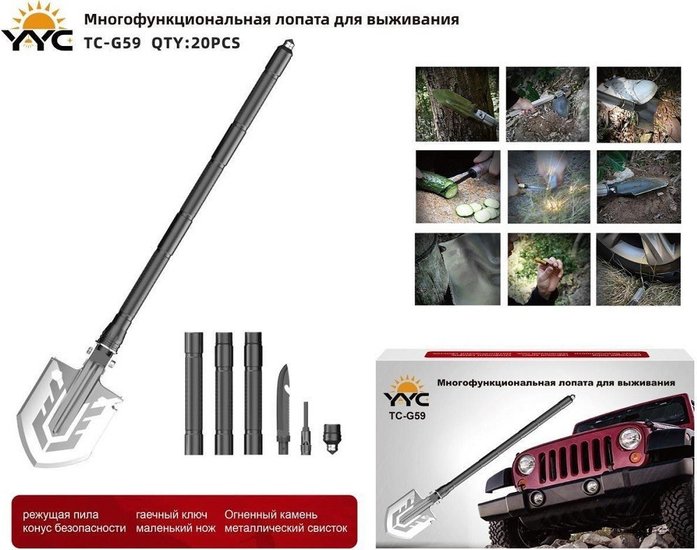 ✅ Тактическая многофункциональная лопата TC-G59 — идеальный инструмент для выживания на природе. Компактный размер позволяет легко помещать её в рюкзак, что делает её незаменимой для туристов, охотников и любителей активного отдыха.✅ Изготовленная из прочной нержавеющей стали 3CR13, эта лопата способна выдерживать значительные нагрузки и экстремальные условия. Удобная ручка обеспечивает надежное сцепление и комфорт при использовании, что делает работу с ней максимально эффективной.✅ Складная конструкция позволяет быстро трансформировать лопату из компактного состояния в полноценный многофункциональный инструмент. Она отлично подходит для рытья ям, создания укрытий, приготовления пищи и даже возведения временной защиты.⚠️ Этот аксессуар станет незаменимым для тех, кто ценит практичность и надежность в любых условиях. Лопата поставляется в защитном чехле с набором дополнительных аксессуаров и может использоваться также в целях самообороны.✅ Многофункциональная лопата TC-G59 идеально подходит для разрезания рыбы и мяса, открытия бутылок, рубки дров, разжигания костра, легкого ремонта и обработки почвы.✅ Тактическая многофункциональная лопата TC-G59 — идеальный инструмент для выживания на природе. Компактный размер позволяет легко помещать её в рюкзак, что делает её незаменимой для туристов, охотников и любителей активного отдыха.✅ Изготовленная из прочной нержавеющей стали 3CR13, эта лопата способна выдерживать значительные нагрузки и экстремальные условия. Удобная ручка обеспечивает надежное сцепление и комфорт при использовании, что делает работу с ней максимально эффективной.✅ Складная конструкция позволяет быстро трансформировать лопату из компактного состояния в полноценный многофункциональный инструмент. Она отлично подходит для рытья ям, создания укрытий, приготовления пищи и даже возведения временной защиты.⚠️ Этот аксессуар станет незаменимым для тех, кто ценит практичность и надежность в любых условиях. Лопата поставляется в защитном чехле с набором дополнительных аксессуаров и может использоваться также в целях самообороны.✅ Многофункциональная лопата TC-G59 идеально подходит для разрезания рыбы и мяса, открытия бутылок, рубки дров, разжигания костра, легкого ремонта и обработки почвы.
