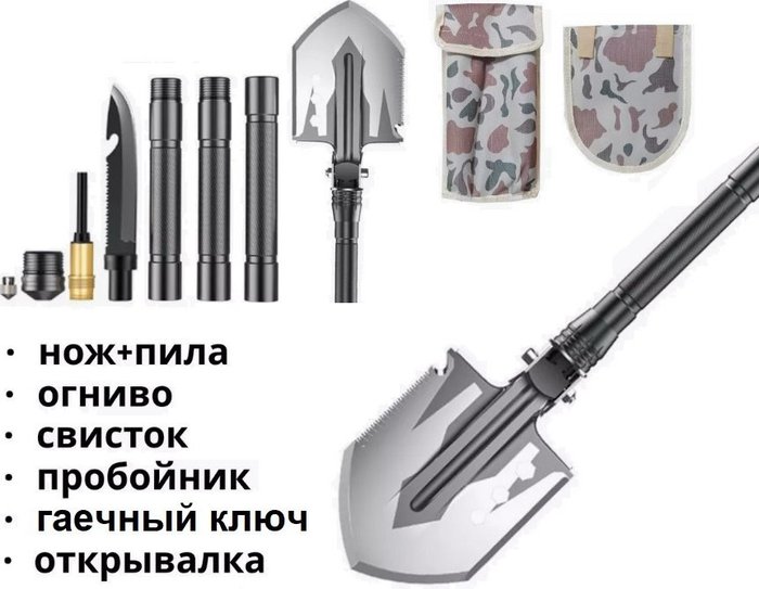 ✅ Многофункциональная складная лопата TC-G57 — это незаменимый инструмент для любителей активного отдыха, выживания и экстренных ситуаций. Благодаря своему складному дизайну, она легко помещается в рюкзак, что делает её идеальным спутником в походах и экспедициях. В разложенном виде длина лопаты составляет 76 см, что обеспечивает удобство в использовании.✅ Изготовленная из высокопрочной нержавеющей стали 3CR13, эта тактическая лопата гарантирует долговечность и надежность. Удобная ручка с антискользящим покрытием обеспечивает надежное сцепление, что особенно важно при работе в сложных условиях. Зубчатый край лезвия позволяет легко справляться с корнями и плотной землёй.✅ Лопата TC-G57 не только копает, но и выполняет множество других функций: пилит, чистит, рубит дрова, выдергивает гвозди и даже помогает разжигать огонь. Она также поставляется в защитном чехле с набором дополнительных аксессуаров, что делает её ещё более универсальной. ⚠️ В экстренных ситуациях лопата может быть использована для самообороны.✅ Эта многофункциональная лопата идеально подходит для разрезания рыбы и мяса, открывания бутылок, легкого ремонта, выкапывания и обработки почвы. С TC-G57 вы всегда будете готовы к любым приключениям на свежем воздухе!✅ Многофункциональная складная лопата TC-G57 — это незаменимый инструмент для любителей активного отдыха, выживания и экстренных ситуаций. Благодаря своему складному дизайну, она легко помещается в рюкзак, что делает её идеальным спутником в походах и экспедициях. В разложенном виде длина лопаты составляет 76 см, что обеспечивает удобство в использовании.✅ Изготовленная из высокопрочной нержавеющей стали 3CR13, эта тактическая лопата гарантирует долговечность и надежность. Удобная ручка с антискользящим покрытием обеспечивает надежное сцепление, что особенно важно при работе в сложных условиях. Зубчатый край лезвия позволяет легко справляться с корнями и плотной землёй.✅ Лопата TC-G57 не только копает, но и выполняет множество других функций: пилит, чистит, рубит дрова, выдергивает гвозди и даже помогает разжигать огонь. Она также поставляется в защитном чехле с набором дополнительных аксессуаров, что делает её ещё более универсальной. ⚠️ В экстренных ситуациях лопата может быть использована для самообороны.✅ Эта многофункциональная лопата идеально подходит для разрезания рыбы и мяса, открывания бутылок, легкого ремонта, выкапывания и обработки почвы. С TC-G57 вы всегда будете готовы к любым приключениям на свежем воздухе!