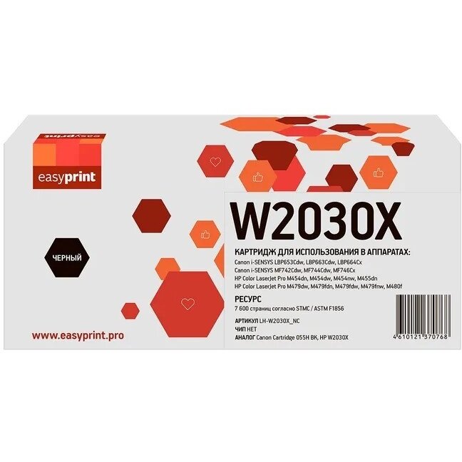 Тонер-картридж Easyprint W2030X (LH-W2030X NC) черный для HP CLJ Pro M454/455/M479/480/Canon LBP663/664/MF742/744/746 (7600 стр.) без чипа