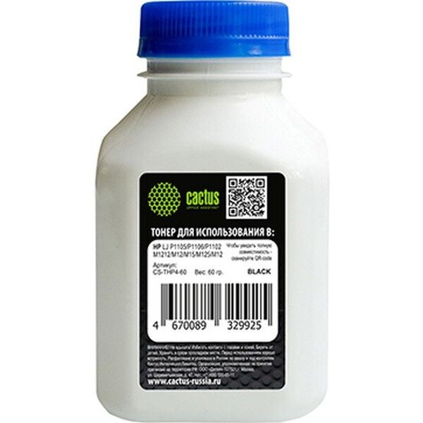 Тонер Cactus CS-THP4-60 черный флакон 60гр для принтера CB435A/CB436A/CE278A/CE285A/CF283A/CF244A/CF283X, принтеров HP LJ P1005/P1006/P1100/P1102/P15