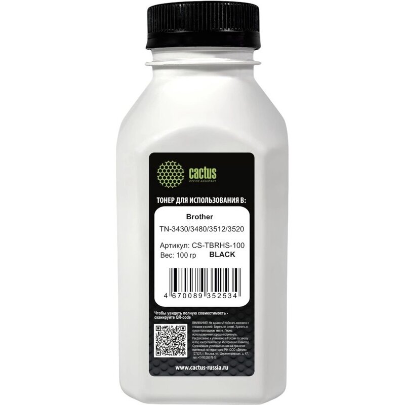 Тонер Cactus CS-TBRHS-100 черный флакон 100гр для принтера Brother TN-3430/3480/3512/3520