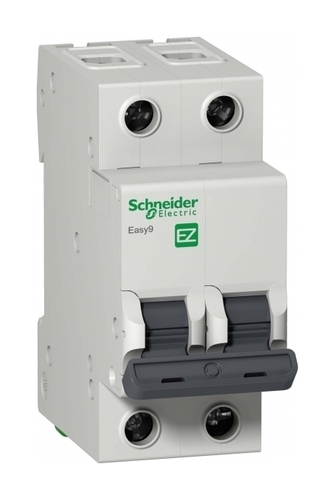 Автоматический выключатель серии Easy9 Schneider Electric, 2-полюсный, номинальный ток 20 А, характеристика В, Icn = 4.5 кА. - Применяется в одно-/двухфазных сетях напряжением 230/400 В.- Предназначен для защиты от перегрузок и КЗ.- Характеристика типа В (3-5 In) обеспечивает защиту линий с малыми токами КЗ, например, линий большой длины и электронного оборудования.- Оснащен механизмом «мгновенного включения».- Ударопрочный корпус из специального пластика с 6 металлическими заклепками.