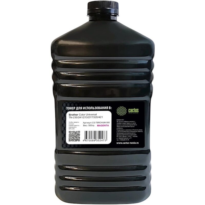Тонер Cactus CS-TBRCHUM-500 пурпурный флакон 500гр для принтера Brother Color Universal TN-230/241/213/217/320/421