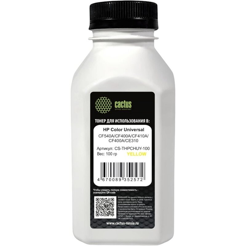 Тонер Cactus CS-THPCHUY-100 желтый флакон 100гр для принтера HP Color Universal CF540A/CF400A/CF410A/CF400A/CE310