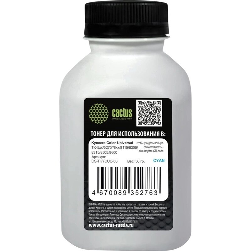 Тонер Cactus CS-TKYCUC-50 голубой флакон 50гр для принтера Kyocera Color Universal TK-5хх/5270/8xx/8115/8305/8315/8505/8600