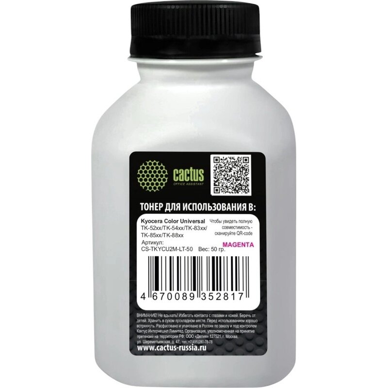 Тонер Cactus CS-TKYCU2M-LT-50 пурпурный флакон 50гр для принтера Kyocera Color Universal TK-52xx/TK-54xx/TK-83xx/TK-85xx/TK-88xx
