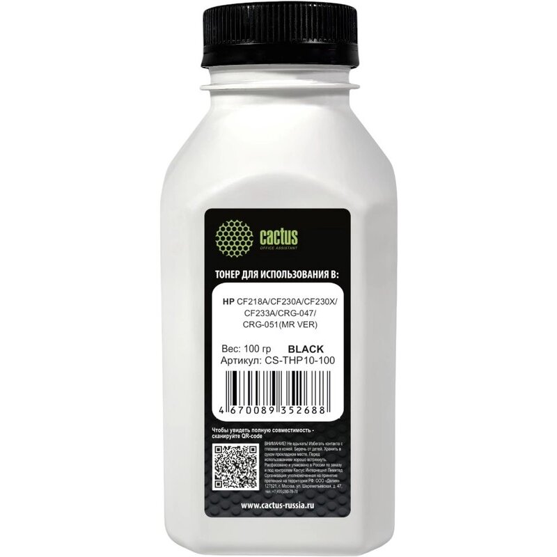 Тонер Cactus CS-THP10-100 черный флакон 100гр для принтера HP CF218A/CF230A/CF230X/CF233A/CRG-047/CRG-051( MR VER)