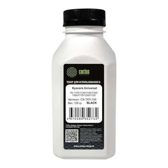 Тонер Cactus CS-TKY-100 черный флакон 100гр для принтера Kyocera Universal TK-1170/1130/1140/1150/1160/1170/1200/1120