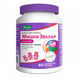 Бэби Формула Мишки Кальций – вкусные жевательные пастилки в форме мишек для детей от 3 лет, содержащие кальций, витамин D3 и фосфор для здорового роста костей и зубов. Способствуют правильному формированию костной ткани, укреплению зубной эмали и профилактике дефицита кальция в период активного роста.<br>