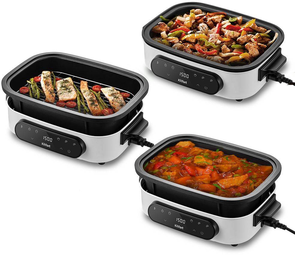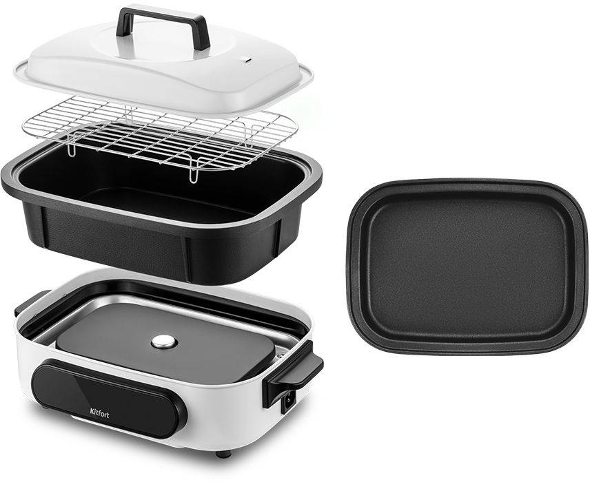 ОписаниеЭлектросковорода КТ-2087 предназначена для жарки, тушения и приготовления на пару разнообразных продуктов. Она поможет вам приготовить любимые жареные блюда без плиты. Отличный вариант для поездки на дачу или в длительную командировку.