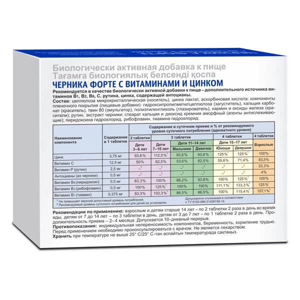 Комплексная пищевая добавка Эвалар Черника-форте с витаминами и цинком