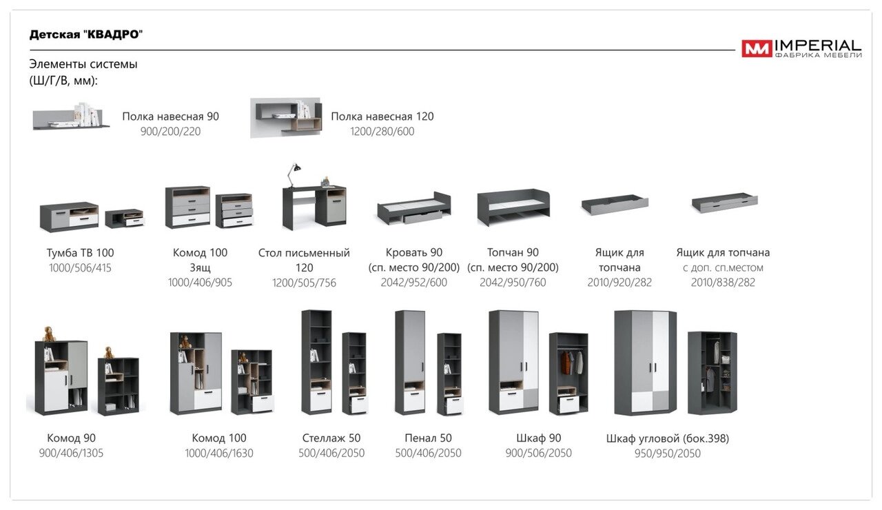 Система Квадро Ящик для кровати-топчана 90 Антрацит/Шиншилла