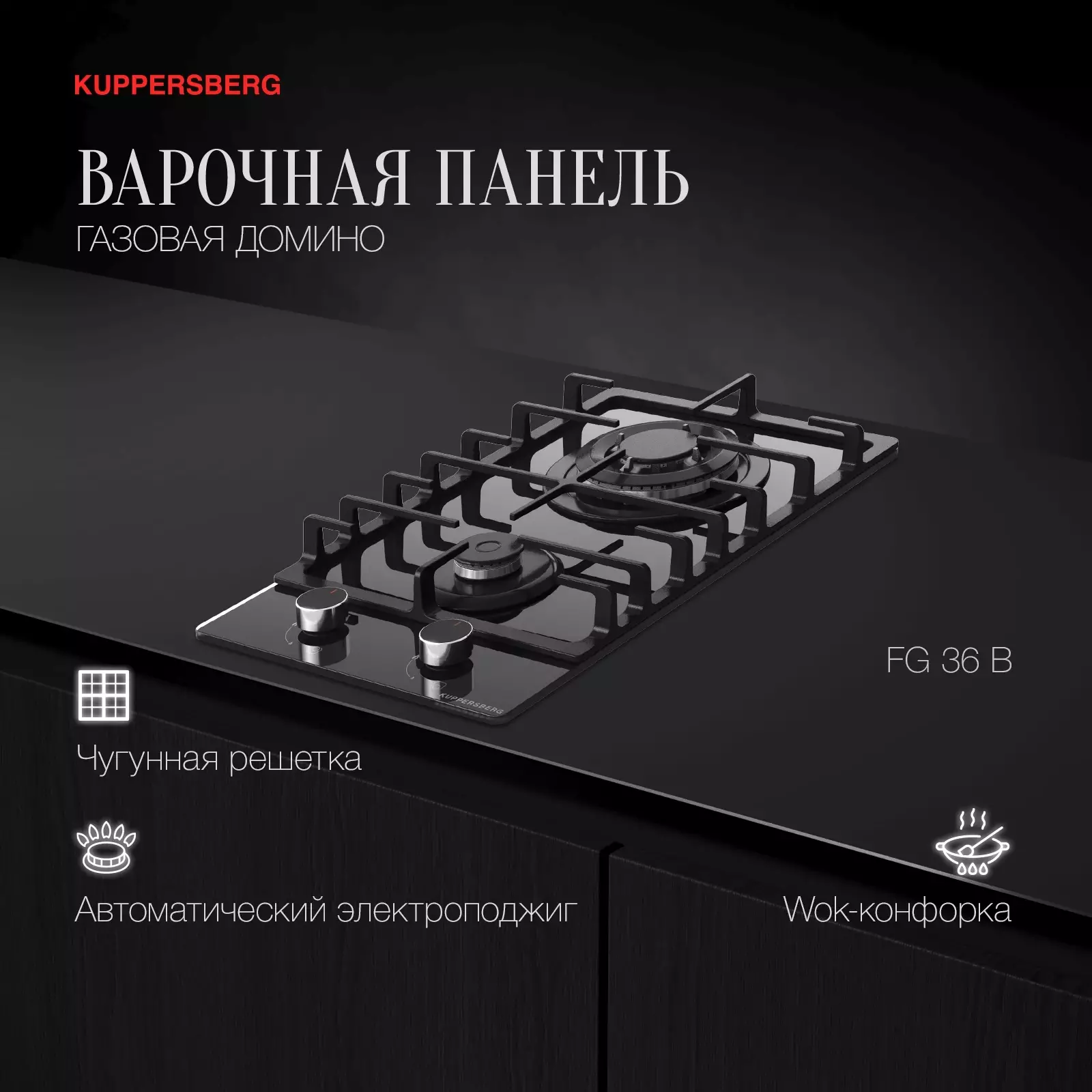 Газовая варочная поверхность Kuppersberg Hi-tech FG 36 B черный (8615)