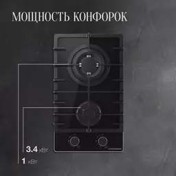 • Суммарная мощность газовых конфорок 4.4 кВт