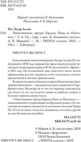 Книга Рипол Классик Повествование Артура Гордона Пима из Нантакета мягкая обложка