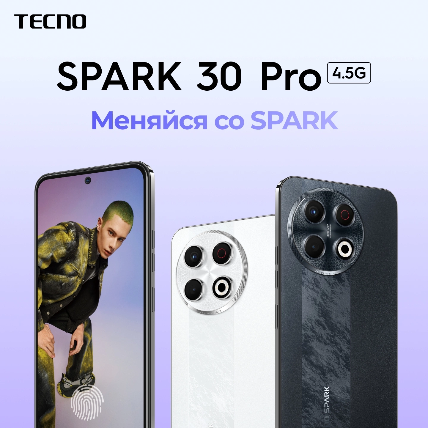 Смартфон Tecno Spark 30 Pro 128Gb 8Gb белый моноблок 3G 4G 2Sim 6.78" 1080x2436 Android 14 108Mpix 802.11 a/b/g/n/ac NFC GPS GSM900/1800 Protect FM microSD max1024Gb