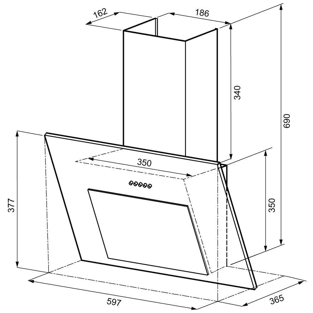 • Размеры, мм (ШхГхВ) 597x365x690