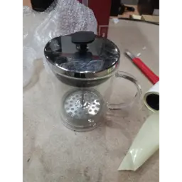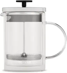 ОписаниеДвойные стенки из закаленного стекла: дольше сохраняется температура напитка, снаружи чайник не обжигает. Специальная метка «стрелка» на крышке френч-пресса для визуального определения фильтра слива.