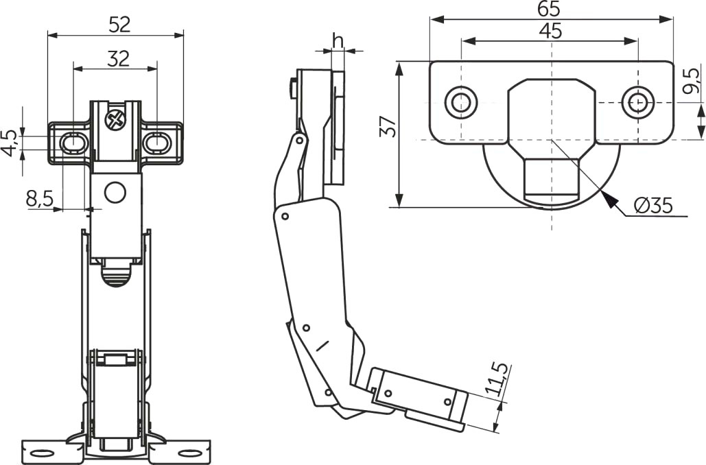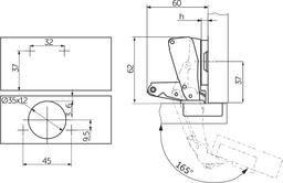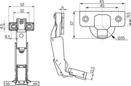 Петля мебельная AKS 165° накладная с пружиной 45мм h2 slide-on / 11 265