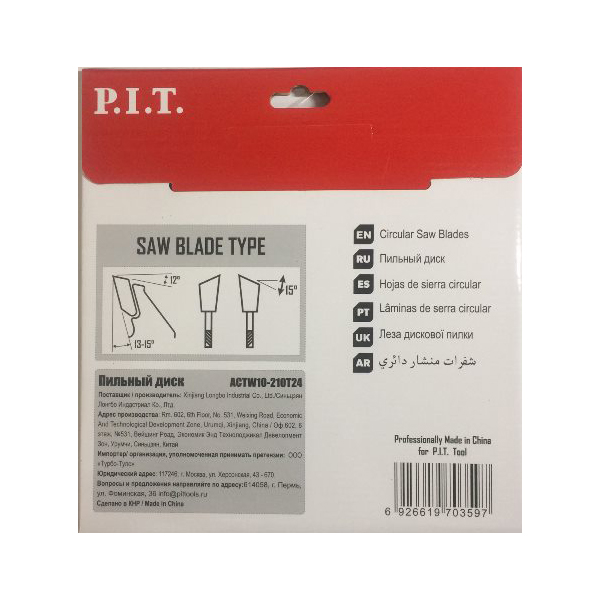 Диск пильный 210x30/20/16x2,2мм 24T P.I.T. ACTW10-210T24