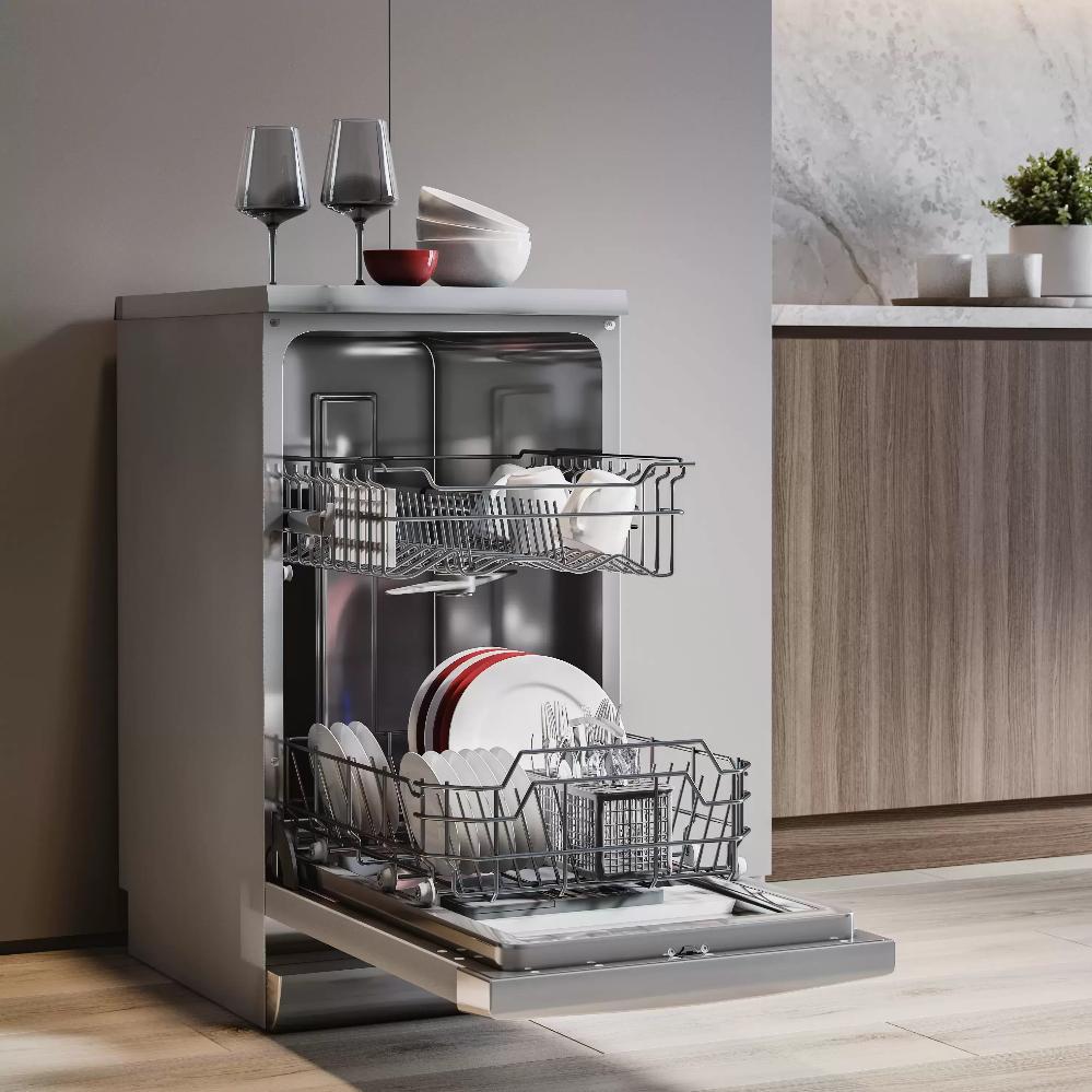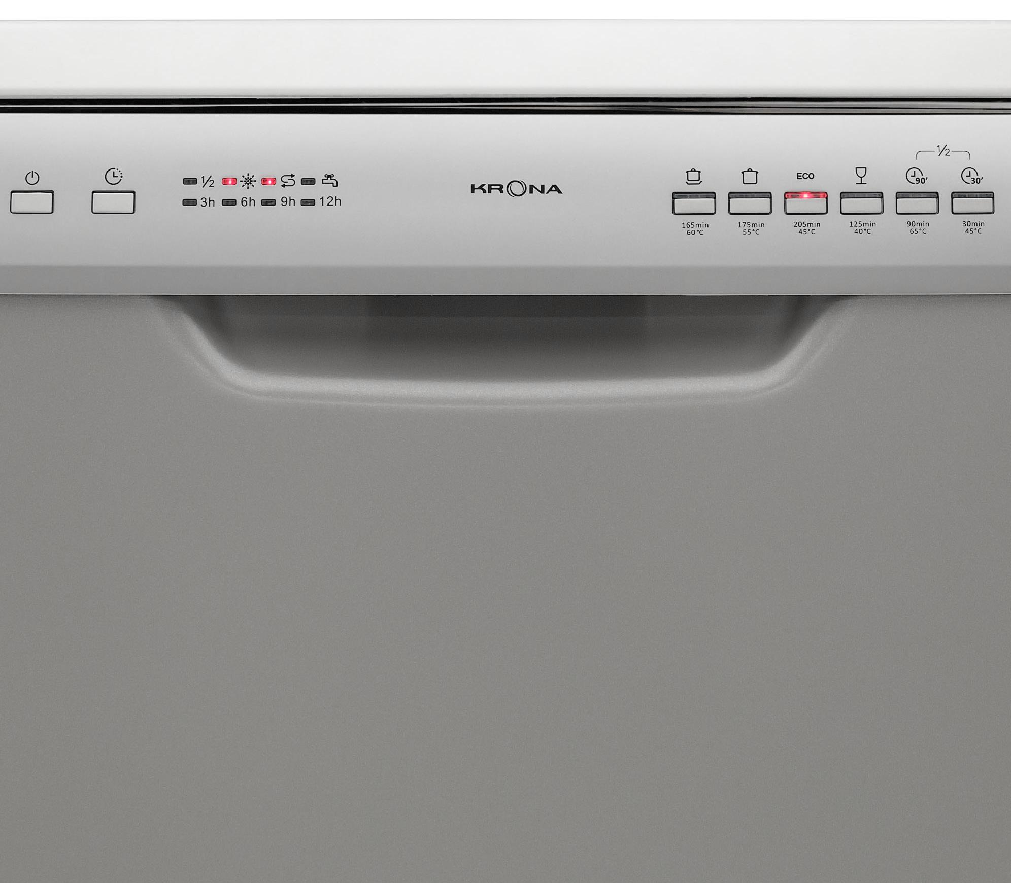 Отдельностоящая модель Крона отлично впишется в кухонный интерьер, главное — правильно выбрать место, чтобы подвести коммуникации. Имеет уменьшенную ширину — благодаря этому поместится даже на очень маленькой кухне. В камеру можно загрузить ограниченное число комплектов: 9 шт. Комплектом считается набор посуды на одного человека, который нужен для полноценного приема пищи: глубокая и плоская тарелки, тарелка для салата, блюдце под чашку, сама чашка, ложка и вилка.