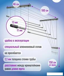 Сушилка для белья Comfort Alumin Group Потолочная 5 прутьев Silver Style 180 см (алюминий)