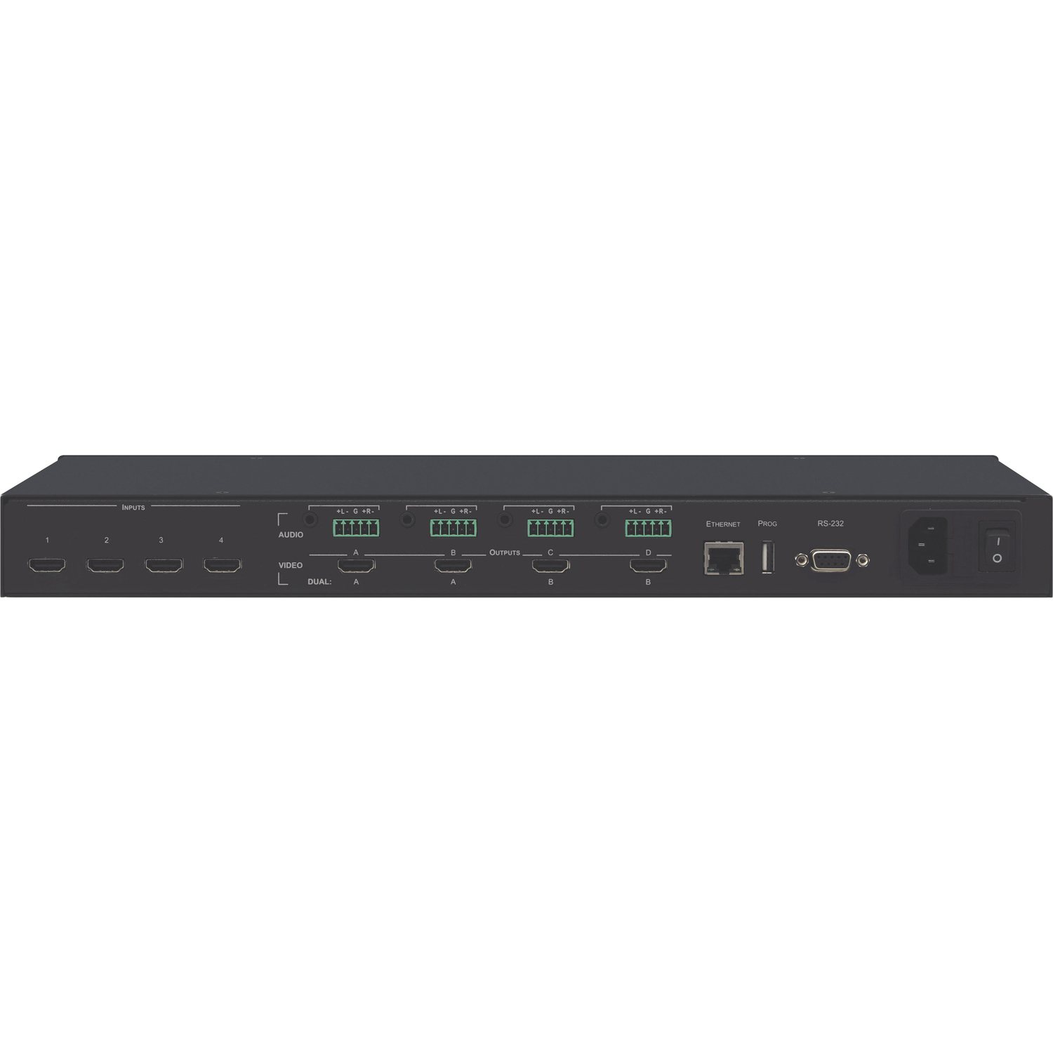 Матричный коммутатор 4x4 HDMI бесподрывный с масштабируемыми входами; балансные/небалансные аудиовыходы [20-00065430]