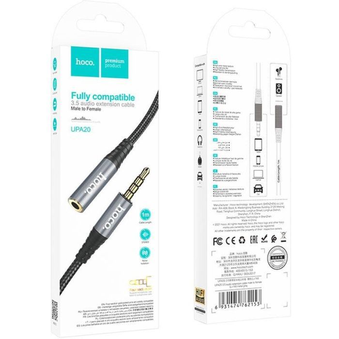 Кабель мультимедійний 3.5mm M to 3.5mm F 1.0m Gray HOCO (6931474762153)