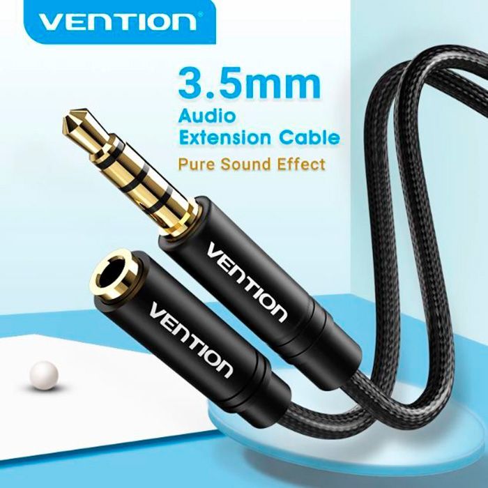 Кабель мультимедійний 3.5mm M to 3.5mm F 1.0m black Vention (BHBBF)