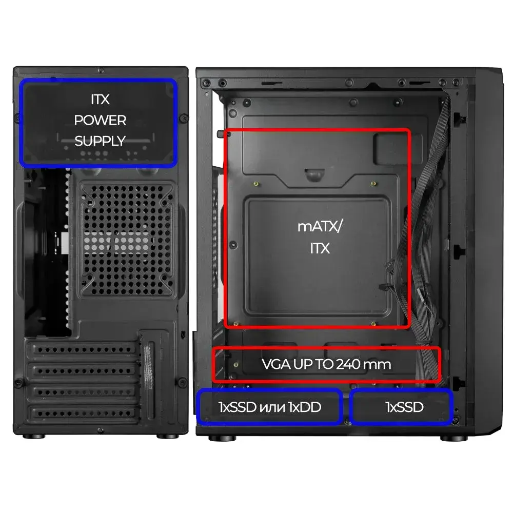 • Форм-фактор материнской платы Micro-ATX, Mini-ITX
