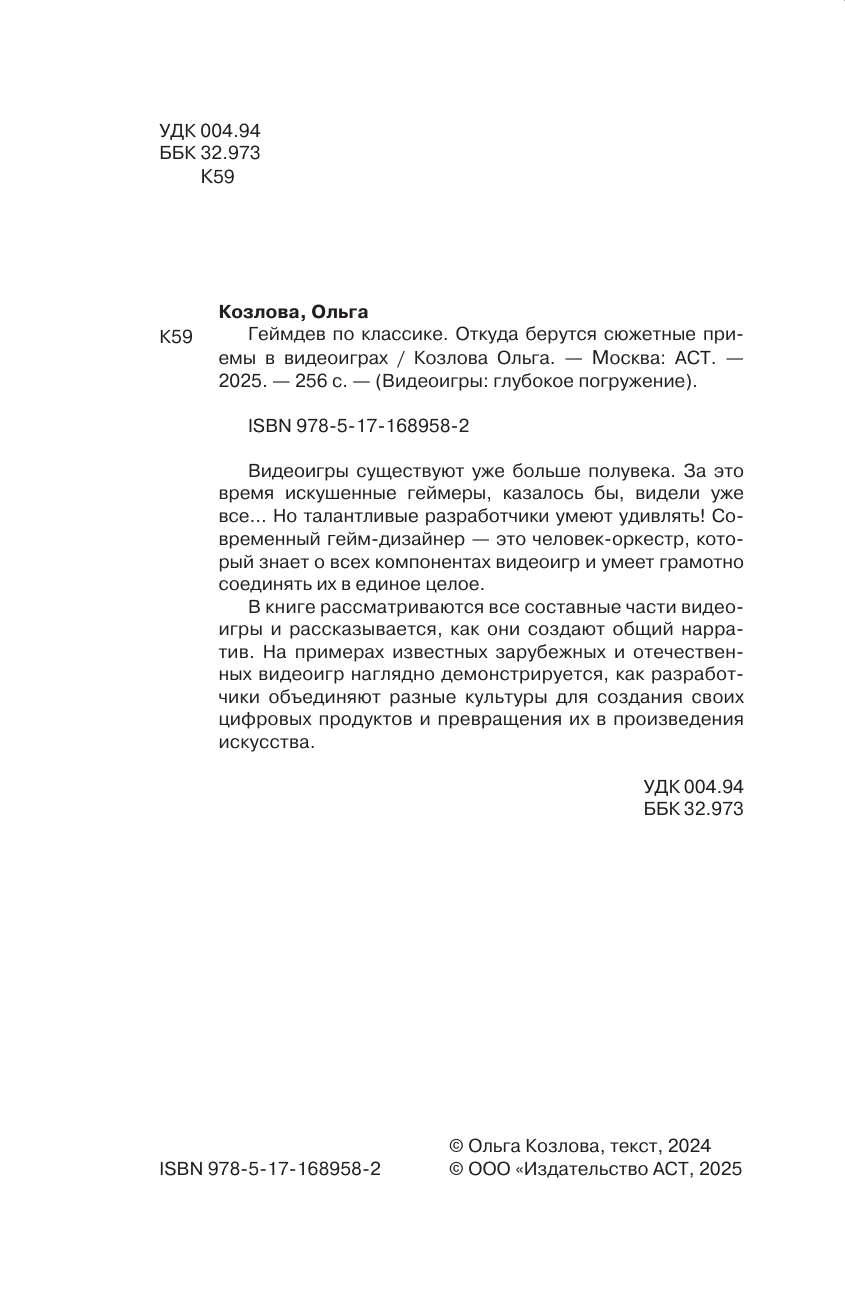 Книга АСТ Геймдев по классике, твердая обложка (Козлова Ольга)