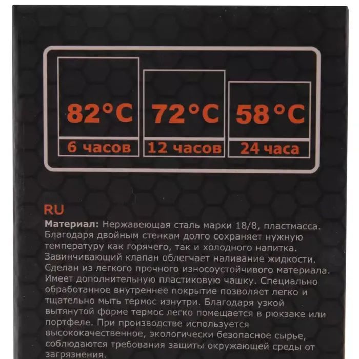 • Збереження тепла 82°С через 6 годин, 72°С через 12 годин, 58°С через 24 години