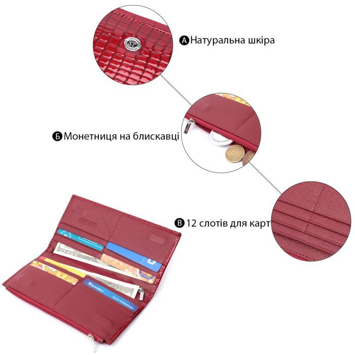 Гаманець ST Leather З натуральної шкіри Червоний (22715)