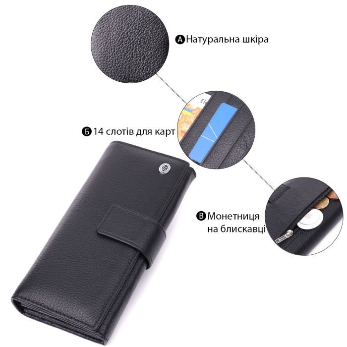 Гаманець ST Leather З натуральної шкіри Чорний (22548)