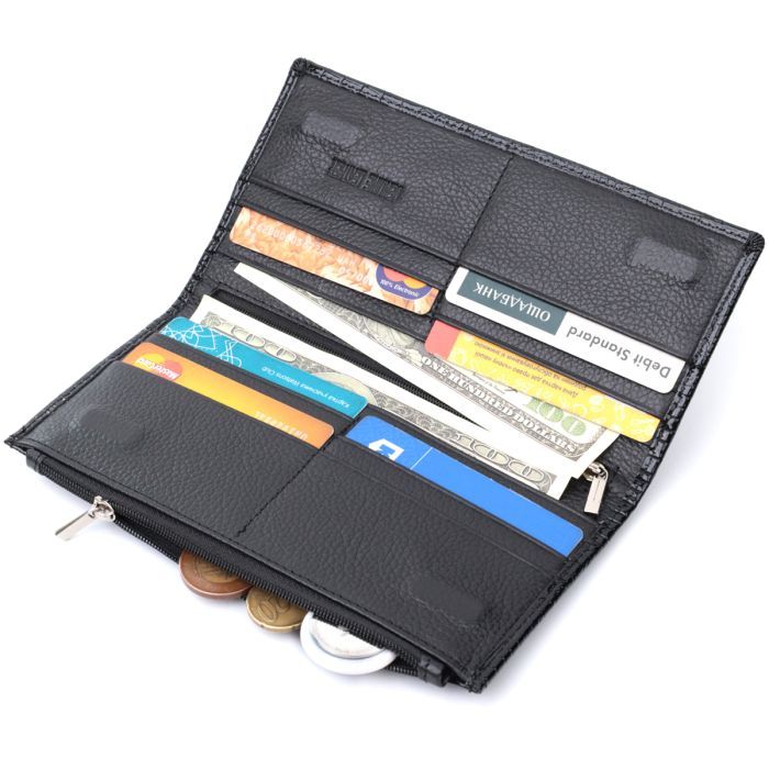 • Особливості з монетницею , для карт , з тисненням , подвійне складання