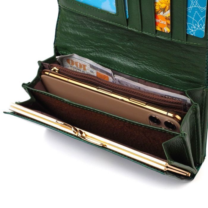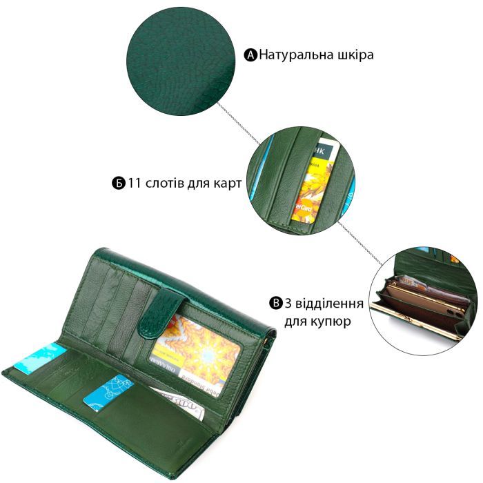 Гаманець ST Leather З натуральної шкіри Зелений (19424)