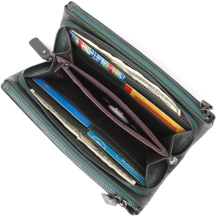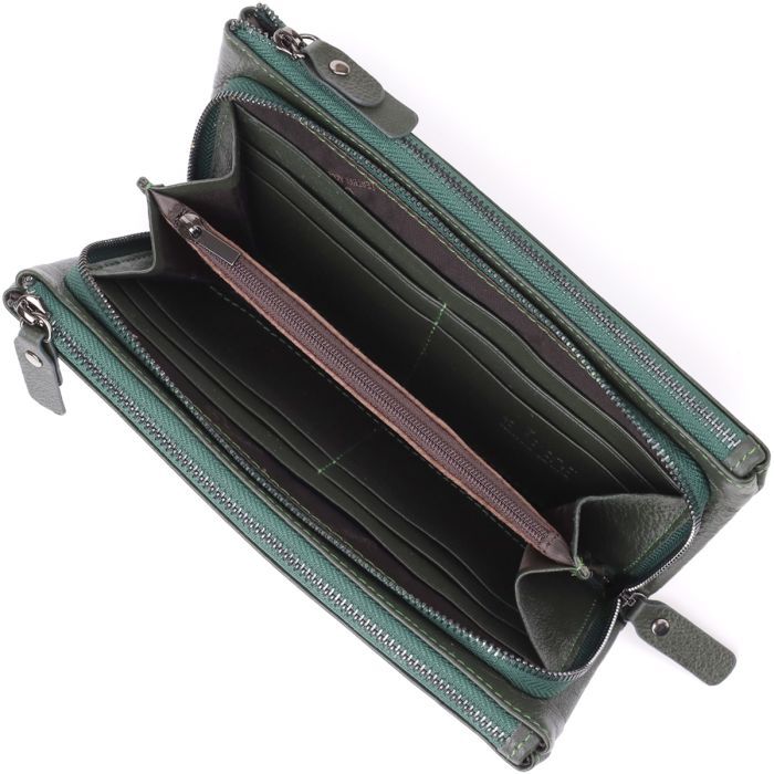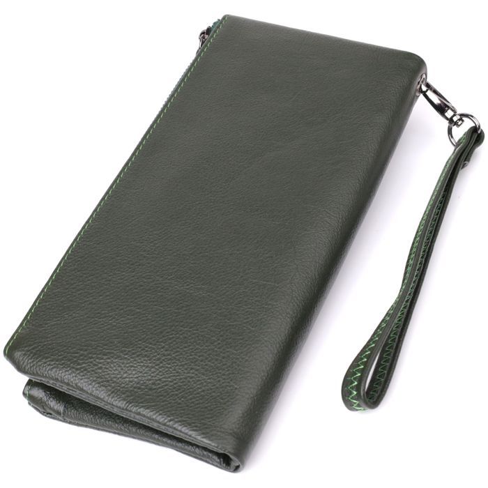 Гаманець ST Leather Шкіряний на три відділення Зелений (23110)