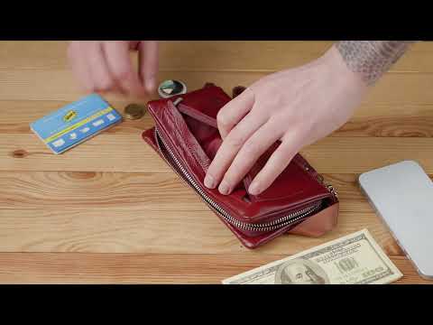 • Модель Шкіряний з відділенням під телефон Бордовий