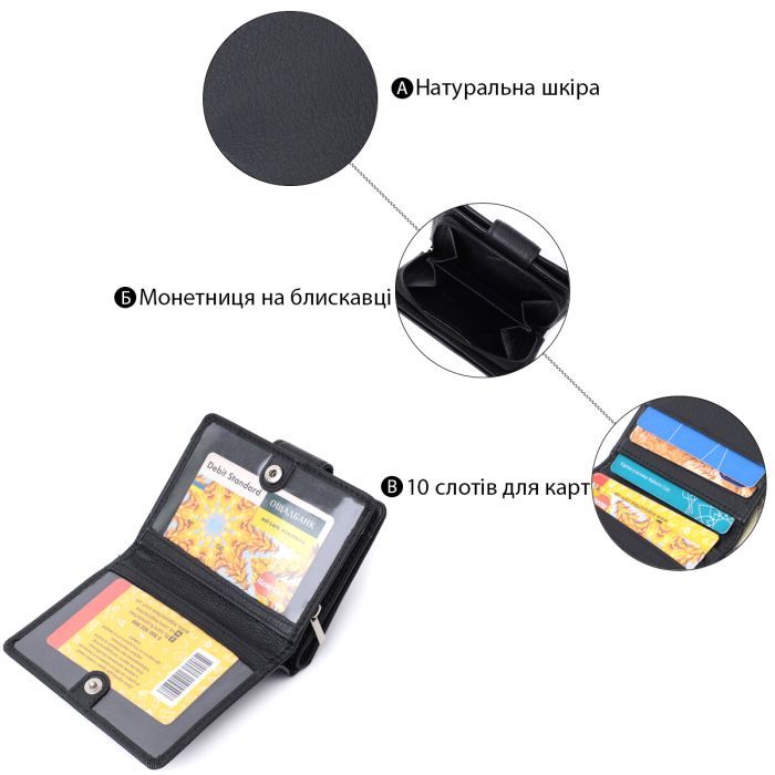 Гаманець ST Leather З монетницею та блоком для пропусків з натуральної шкіри Чорний (22713)