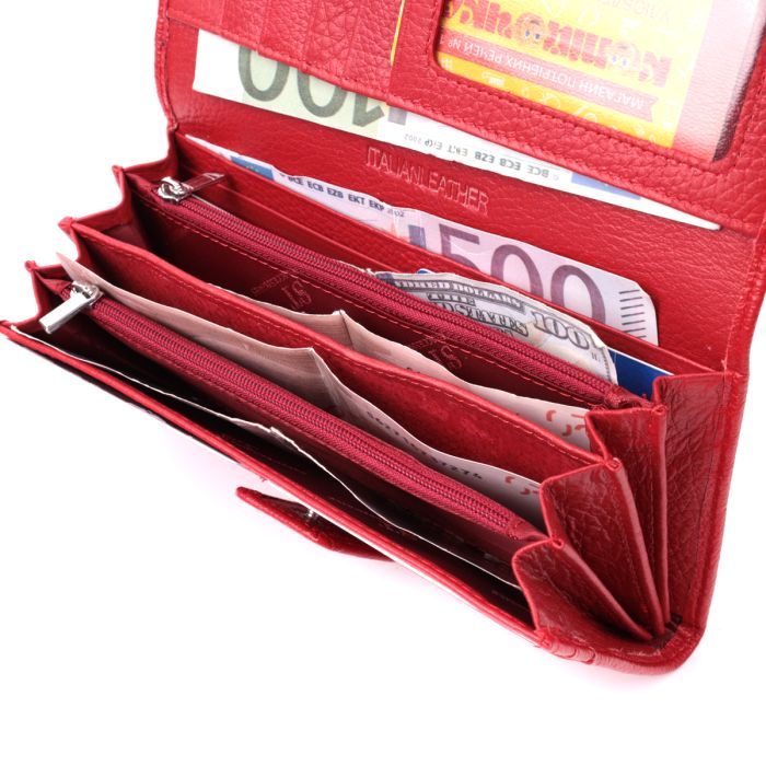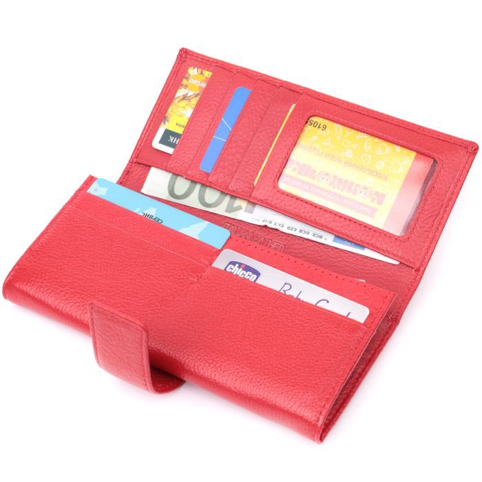 Гаманець ST Leather На чотири відділення для купюр із натуральної шкіри Червоний (22549)