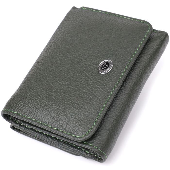 Гаманець ST Leather З натуральної шкіри Зелений (23072)