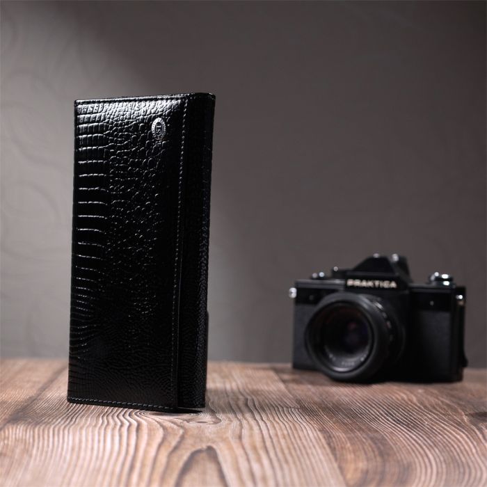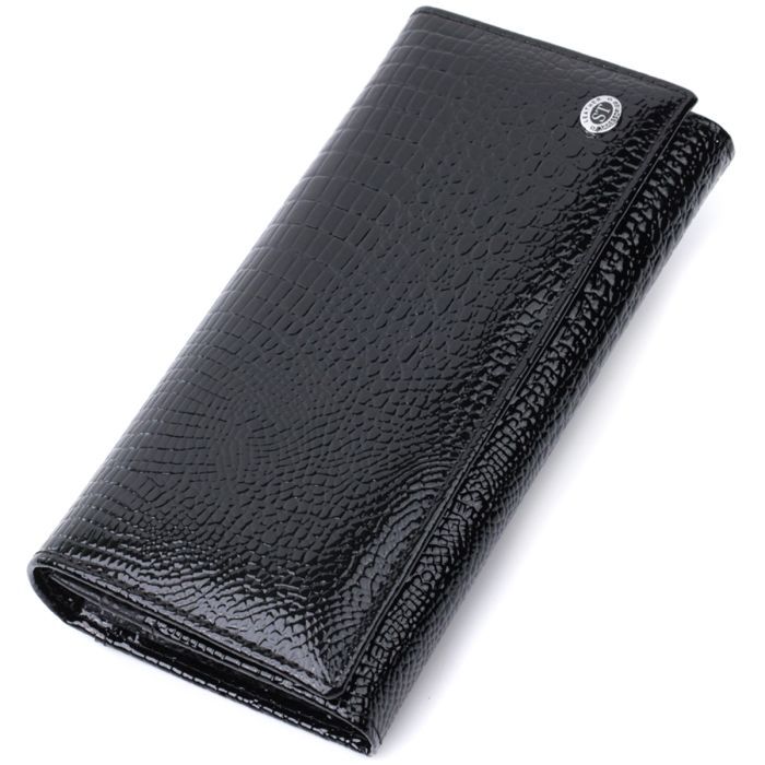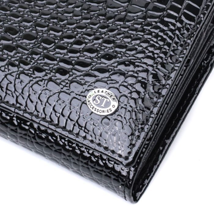 Гаманець ST Leather З натуральної лакованої шкіри Чорний (22679)