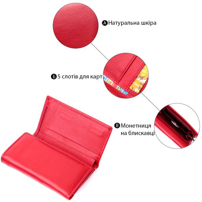 • Модель В три складення з натуральної шкіри Червоний